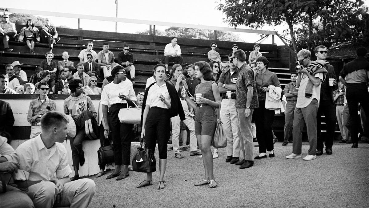 Then in August 1959 a small independent film was released that gave the UK modernists a visual interpretation of their new-found music. Entitled Jazz On A Summer’s Day the film is a dazzling documentary of the Newport Jazz Festival held a year earlier on Rhode Island, USA. The festival was founded in 1954 and soon became the hippest event in the country. It wasn’t long before Bert Stern, a young New Yorker specialising in “still” advertising photography, had the bright idea of filming the Newport Jazz Festival, in which 50 top-flight American jazz musicians and vocalists took part and to which jazzanistas in their legions flocked from all over. Stern has a wonderful gift for capturing the colour, style and panache of the venue, artistes and audience. He then intersperses this with film of the city of Newport from the harbour with its racing yachts skimming gracefully over the sparkling and shimmering water to shots of kids playing on the beach and onto the cool cats arriving at the event. And “cool” is the word.