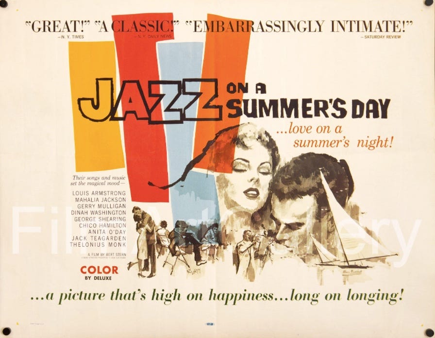 The music featuring the Jimmy Giuffre 3, Thelonious Monk Trio, Dinah Washington, Louis Armstrong and Mahalia Jackson to name just a few is scintillating. The multi-racial crowd has never been hipper and as day turns to night Stern and co-director Aram Avakian capture a vibe that is like nothing anybody had seen, heard or felt before in America or at one of the few cinemas that showed it in the UK. The reviews were superb, those that saw it had now bought into this whole new scene and Britain edged that little bit closer to the 1960s…